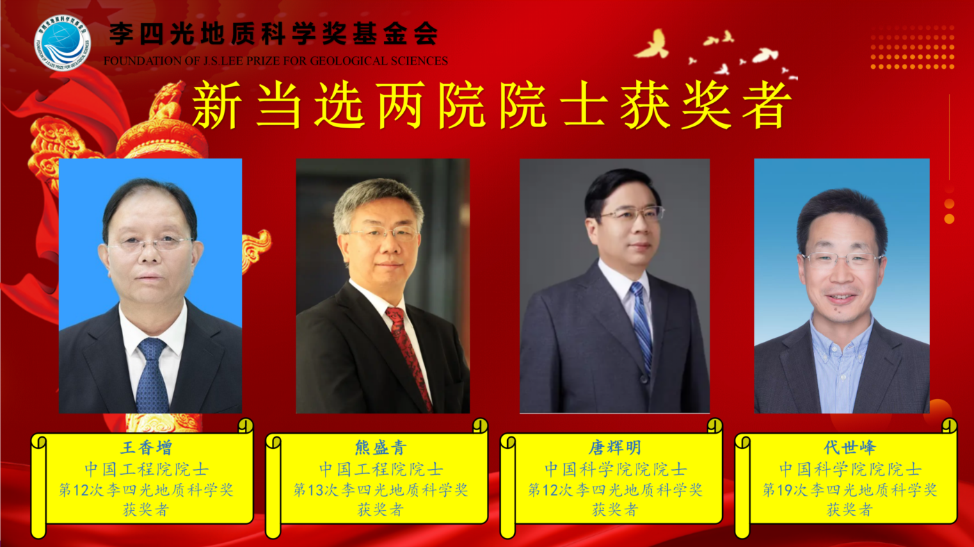 藉此科技界盛事,李四光地质科学奖基金会向四位当选院士表示热烈祝贺!向一直以来关心支持李四光地质科学奖的各界同仁表示真诚的感谢!弘扬李四光精神,推举优秀创新人才,我们将继续努力!